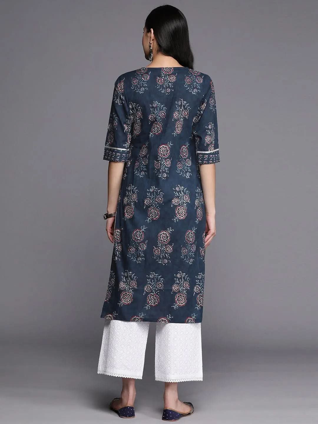 Blue Printed Cotton Straight Kurta