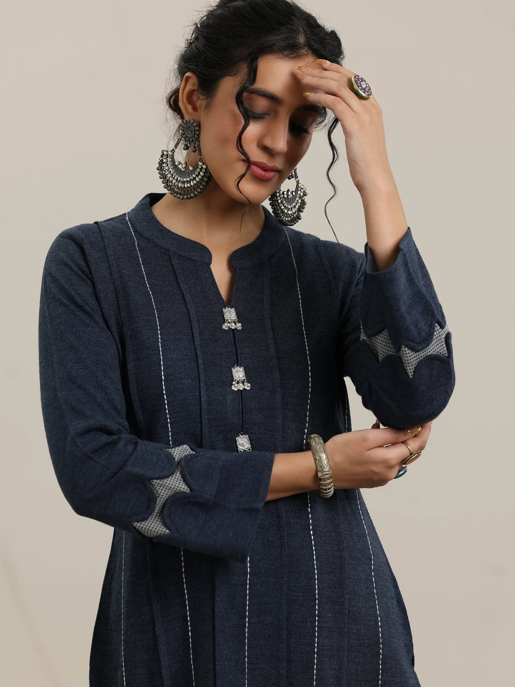 Grey Embroidered Wool Straight Kurta