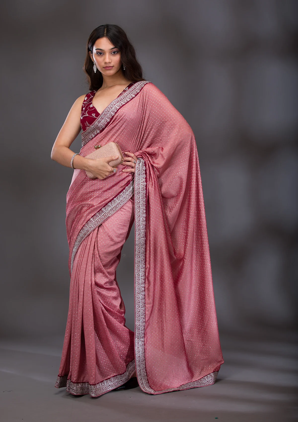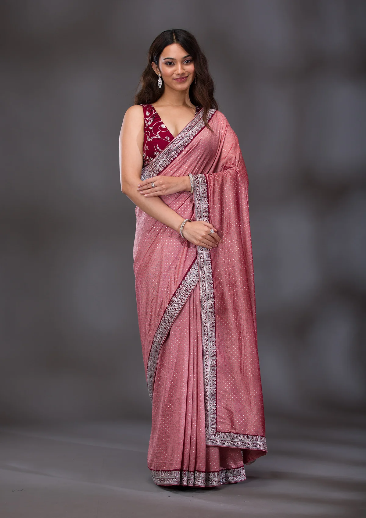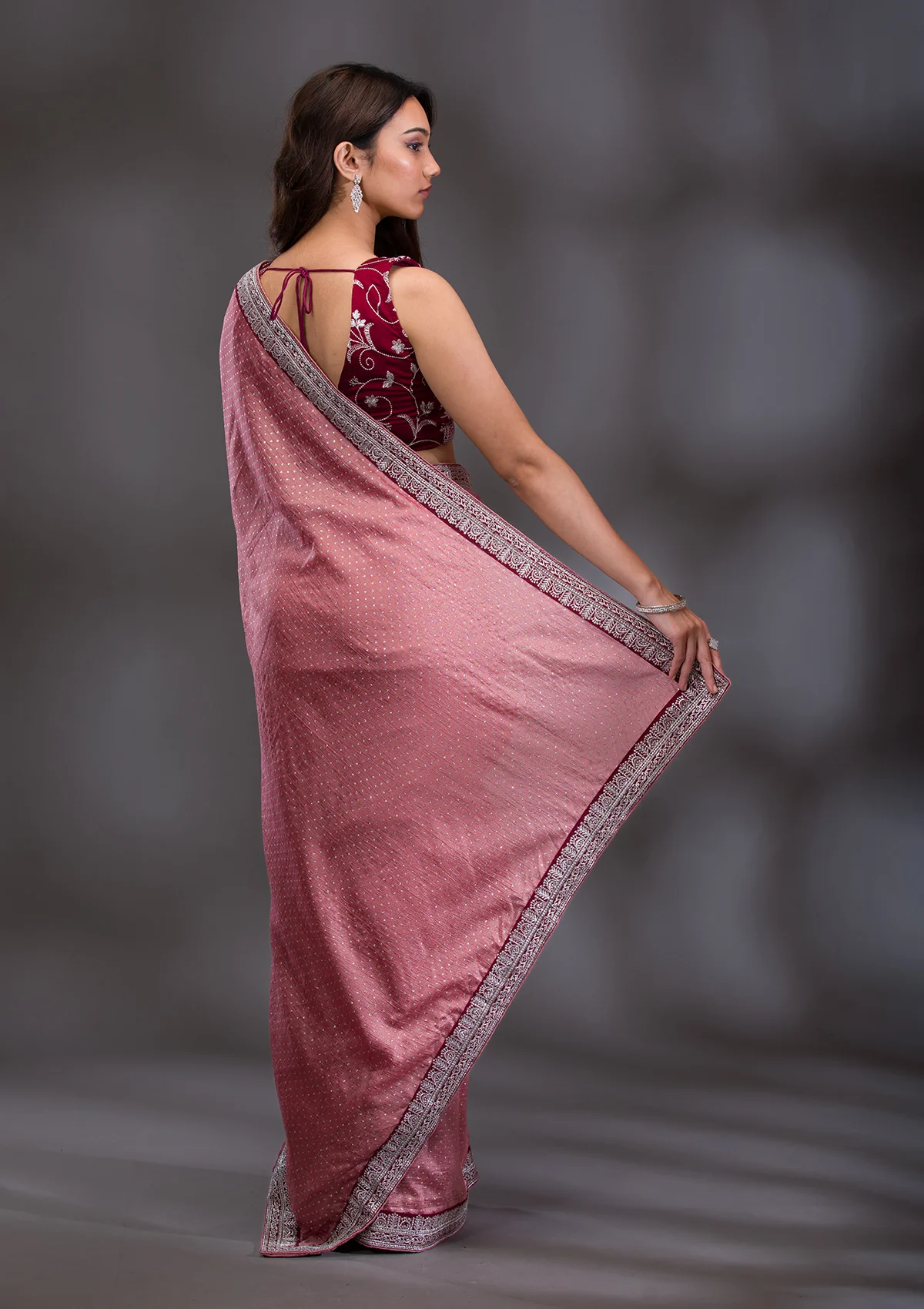 Wine Zariwork (Silver) Chiffon Saree