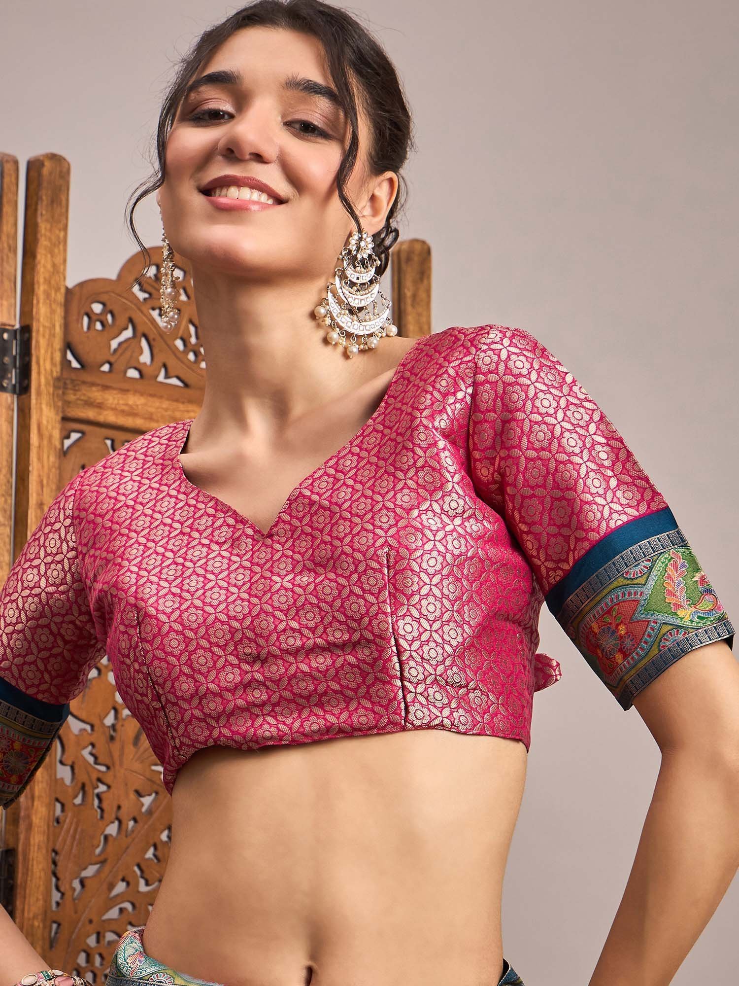 Tulip Chanderi Batik Print Saree with Unstitched Blouse, Pink